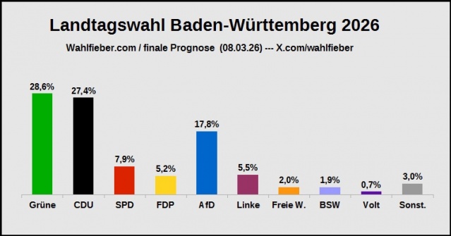Prognose von ... Bergischer... für die Landtagswahl in Baden-Württemberg am 08.03.2026