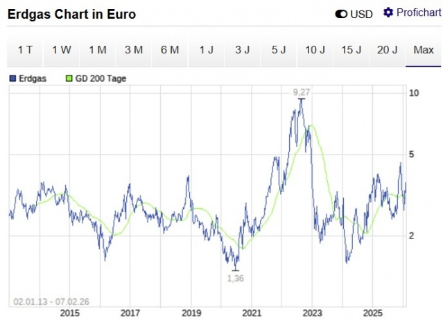 Übrigens: In den Wintern war im Februar 2013 2014 2017 2019 der Preis für Erdgas, bei Berücksichtigung der Inflation seither, effektiv höher als heute.