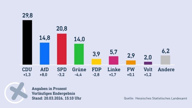 2026 sind es nun (vorläufig) 14,4%. Bei kompletter medialer Breitseite und Abgesang auf Klimaschutz, bei Trommelfeuer zur fossilen und AKW-Renaissance usw. usf.... Bei der Bundestagswahl waren es nur 12,6% in Hessen.